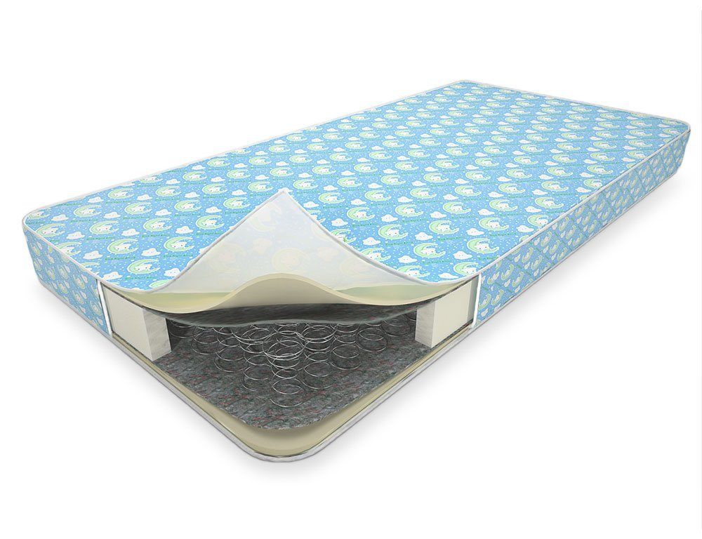 Baby Flex Jump - детский матрас, в основе которого лежит классический пружинный блок Боннель, который создает ровную спальную поверхность и оказывает поддерживающий эффект. Высокоэластичная пена - это экологически чистый, гипоаллергенный и влагоустойчивый материал, который выдерживает сильные нагрузки и делает матрас мягким. Войлок защищает мягкие слои от истирания пружинным блоком и распределяет давление по поверхности пружинного блока. Этот прочный и износоустойчивый материал из натурального сырья делает матрас более долговечным. Чехол сшит из хлопковой ткани. Матрас рекомендуется для детей от рождения до 10 лет.