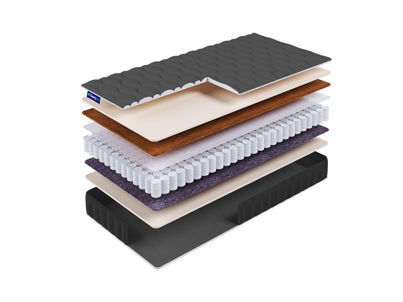 Кокосовая койра придает поверхности матраса жесткость, обладает превосходными ортопедическими и эксплуатационными свойствами.