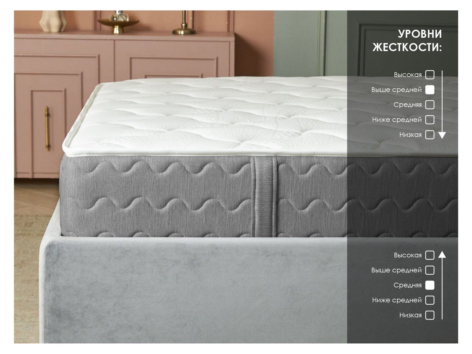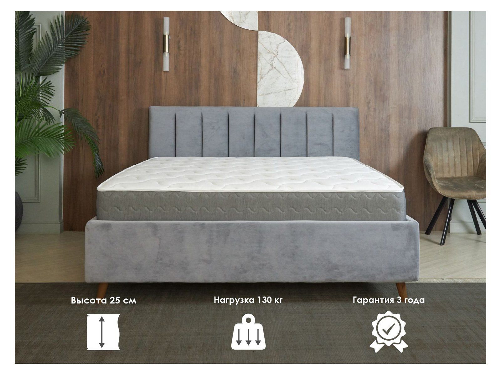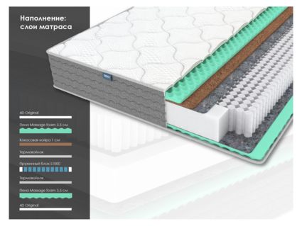 Эта модель сочетает независимый пружинный блок высокой плотности, двустороннее наполнение для выбора подходящей жёсткости и массажное воздействие конволюторной пены.