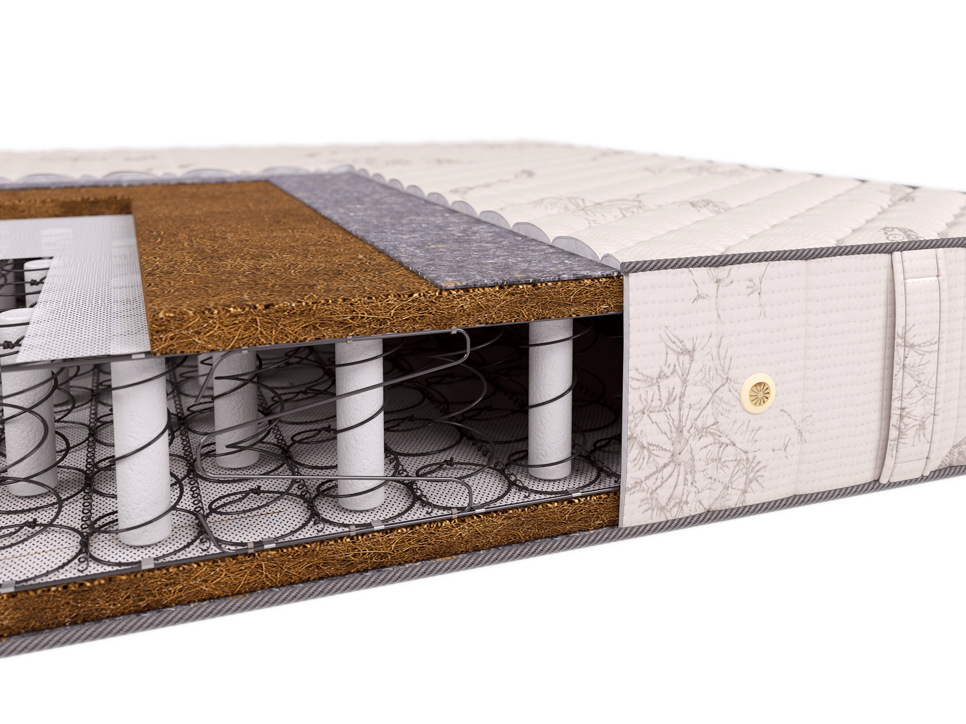 Матрас Евро Кокос выполнен на основе 3-х зонного зависимого блока пружин, усиленного в области поясницы, и натурального кокосового волокна. Данный матрас имеет симметричную конструкцию и обладает одинаковой выраженной жёсткостью обеих сторон. Латексированное кокосовое волокно не только придаёт матрасу высокую жёсткость, но и благодаря своим уникальным природным бактерицидным свойствам предотвращает появление в матрасе вредных микроорганизмов, продлевая срок его службы и надолго сохраняя гигиеническую чистоту спального места.