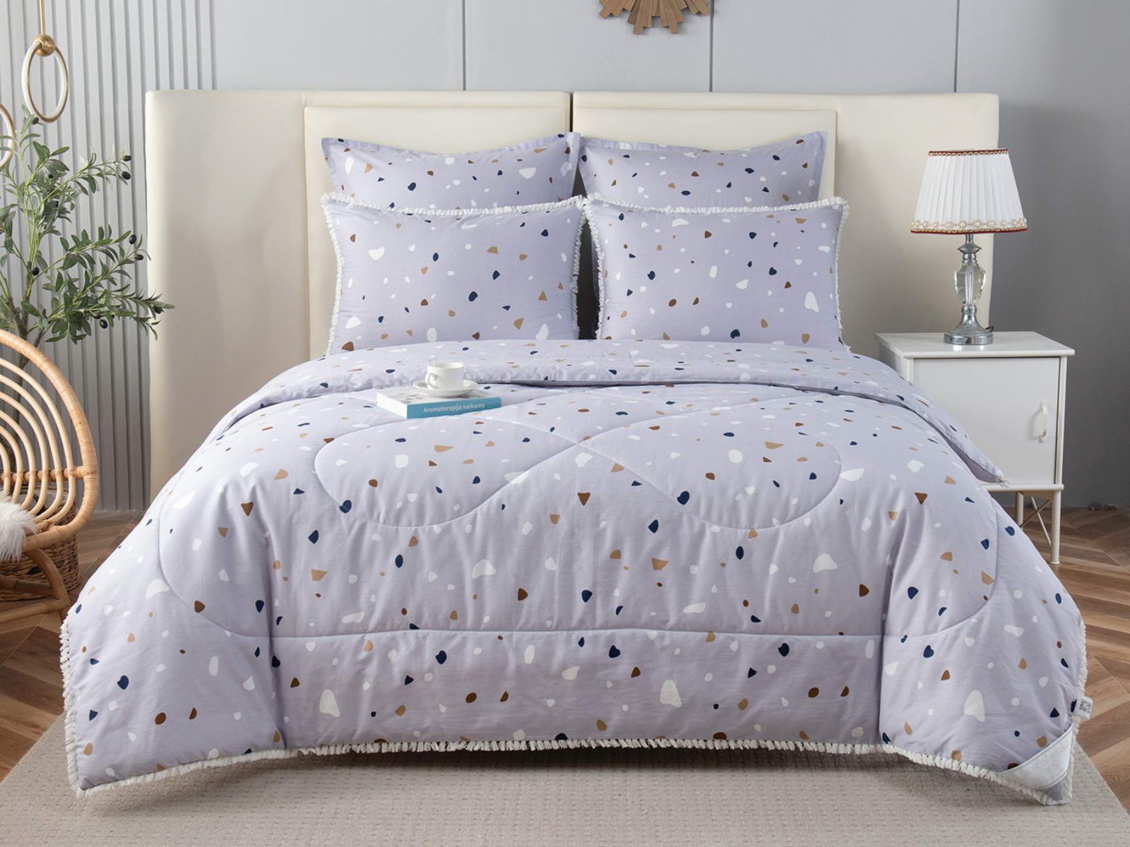 В комплекты комфортеров с одеялом Бернадетт входят наволочки, простыня и легкое всесезонное одеяло. Оцените это современное и очень удобное решение, которое идеально подходит тем, кто не любит возиться с пододеяльниками.