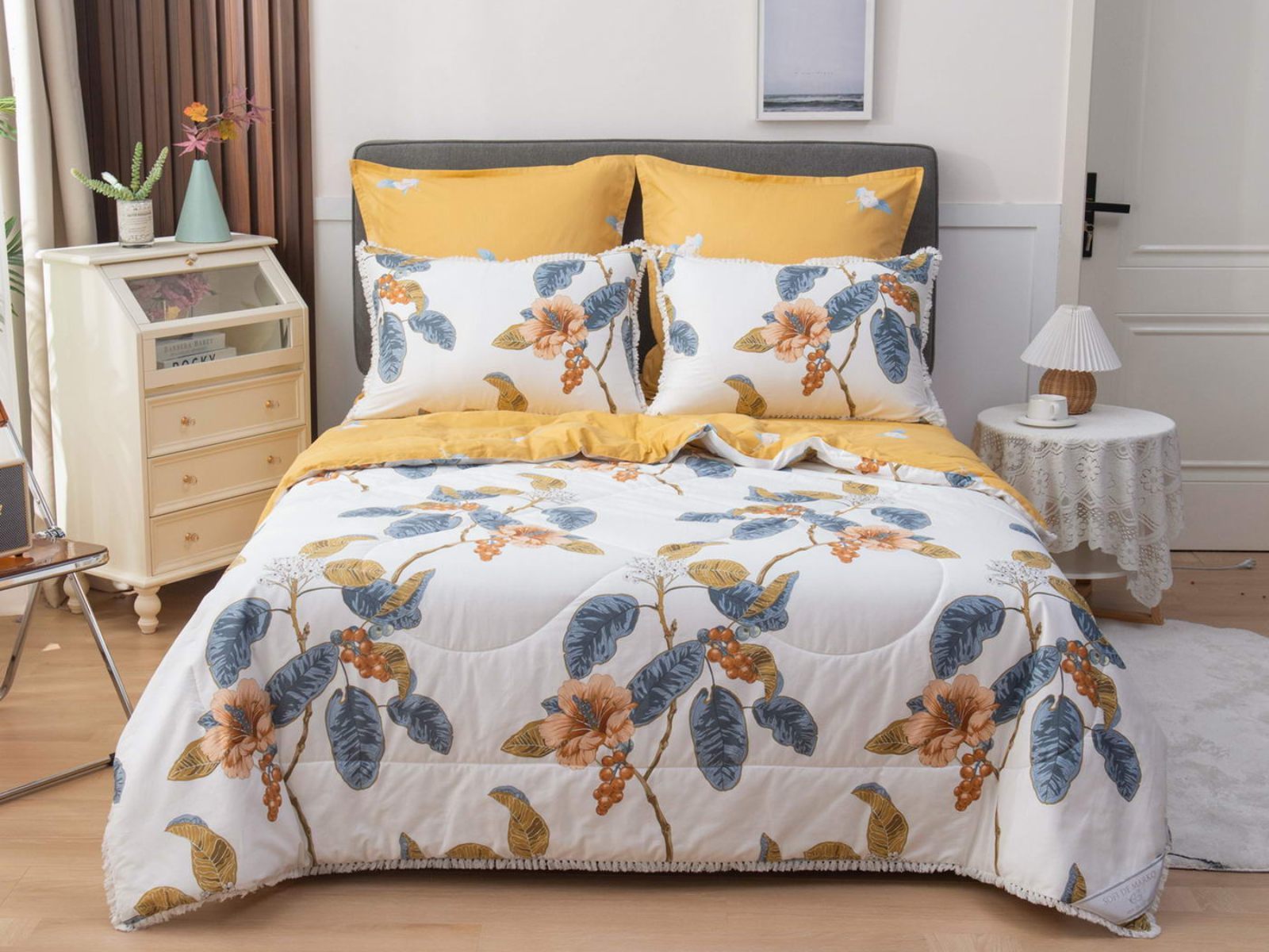 В комплекты комфортеров с одеялом Бернадетт входят наволочки, простыня и легкое всесезонное одеяло. Оцените это современное и очень удобное решение, которое идеально подходит тем, кто не любит возиться с пододеяльниками.