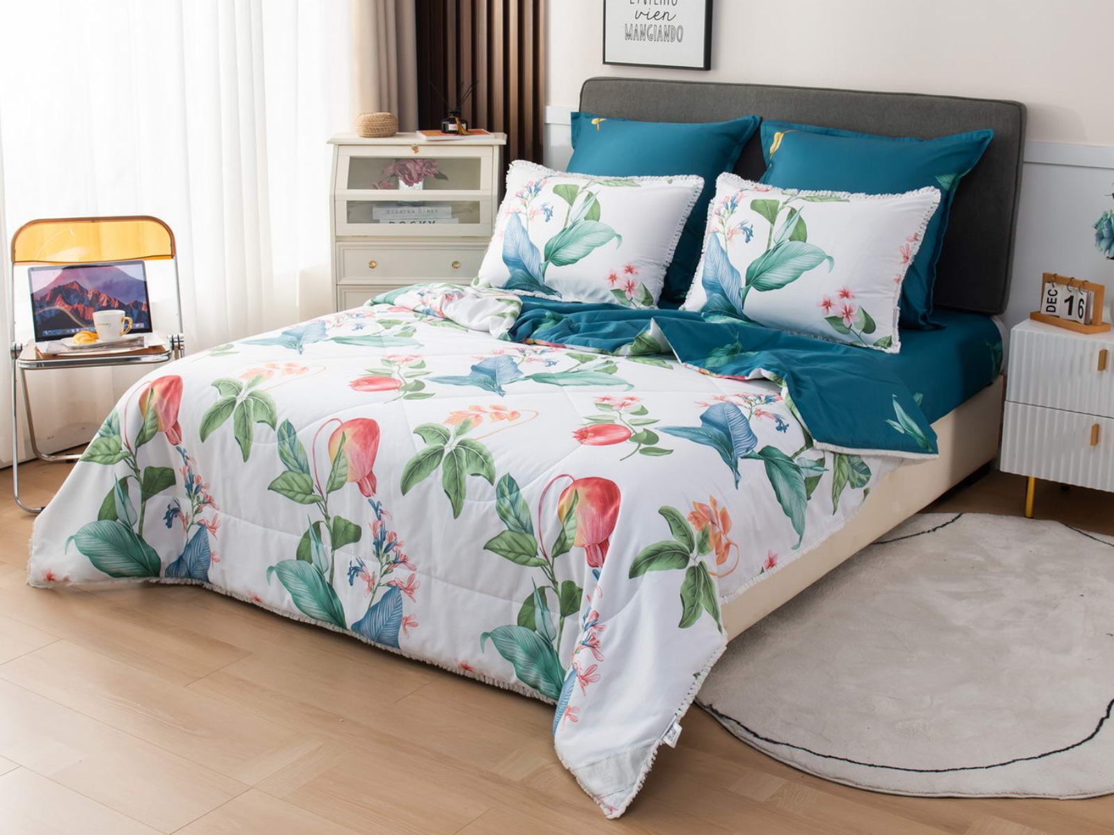 В комплекты комфортеров с одеялом Бернадетт входят наволочки, простыня и легкое всесезонное одеяло. Оцените это современное и очень удобное решение, которое идеально подходит тем, кто не любит возиться с пододеяльниками.
