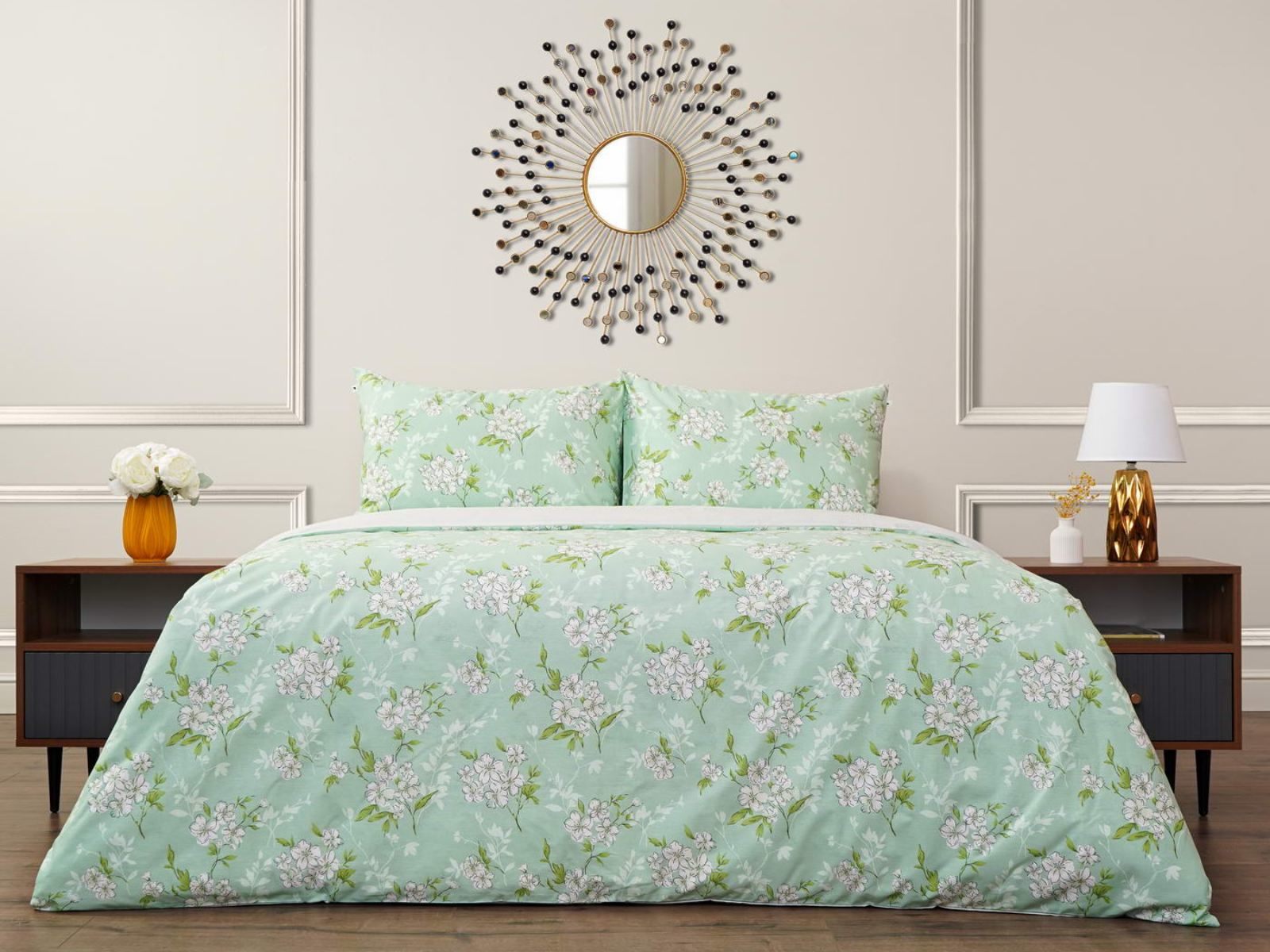 Комплект Мэгги легко стирается в обычной машине в бережном режиме и также легко гладится.