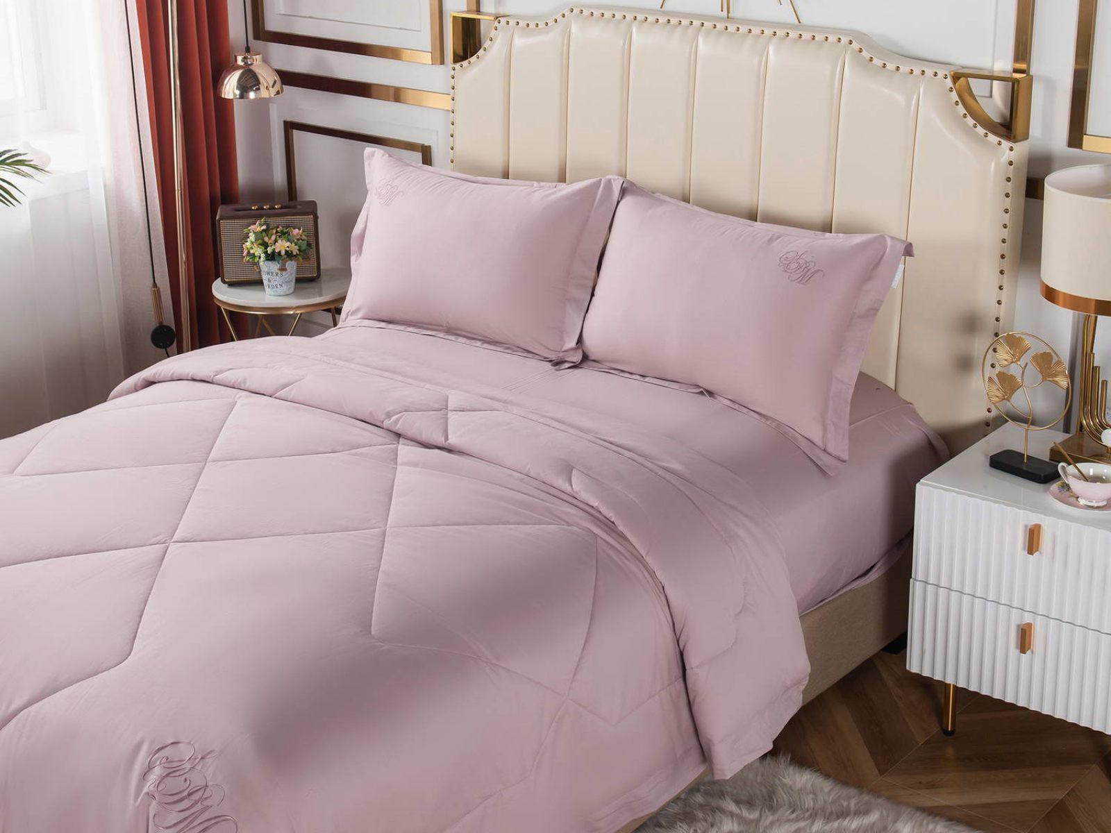 Элегантные комплекты постельного белья с одеялом премиум класса из нежной, натуральной ткани макосатин Нельсон. Этот материал обладает рядом важных качеств: он прочный, но мягкий, гладкая поверхность придает постельному белью красивый внешний вид. Натуральная ткань не вызывает аллергии и раздражения, такое постельное белье приятно использовать в любое время года, и в жару, и в холод.