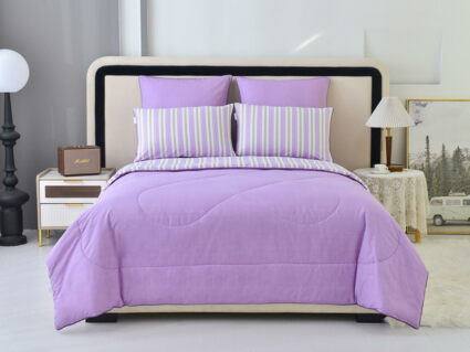 В комплект входит легкое, мягкое, летнее одеяло. Его можно стирать вместе с другим бельем, оно быстро сохнет и после стирки его не нужно гладить.