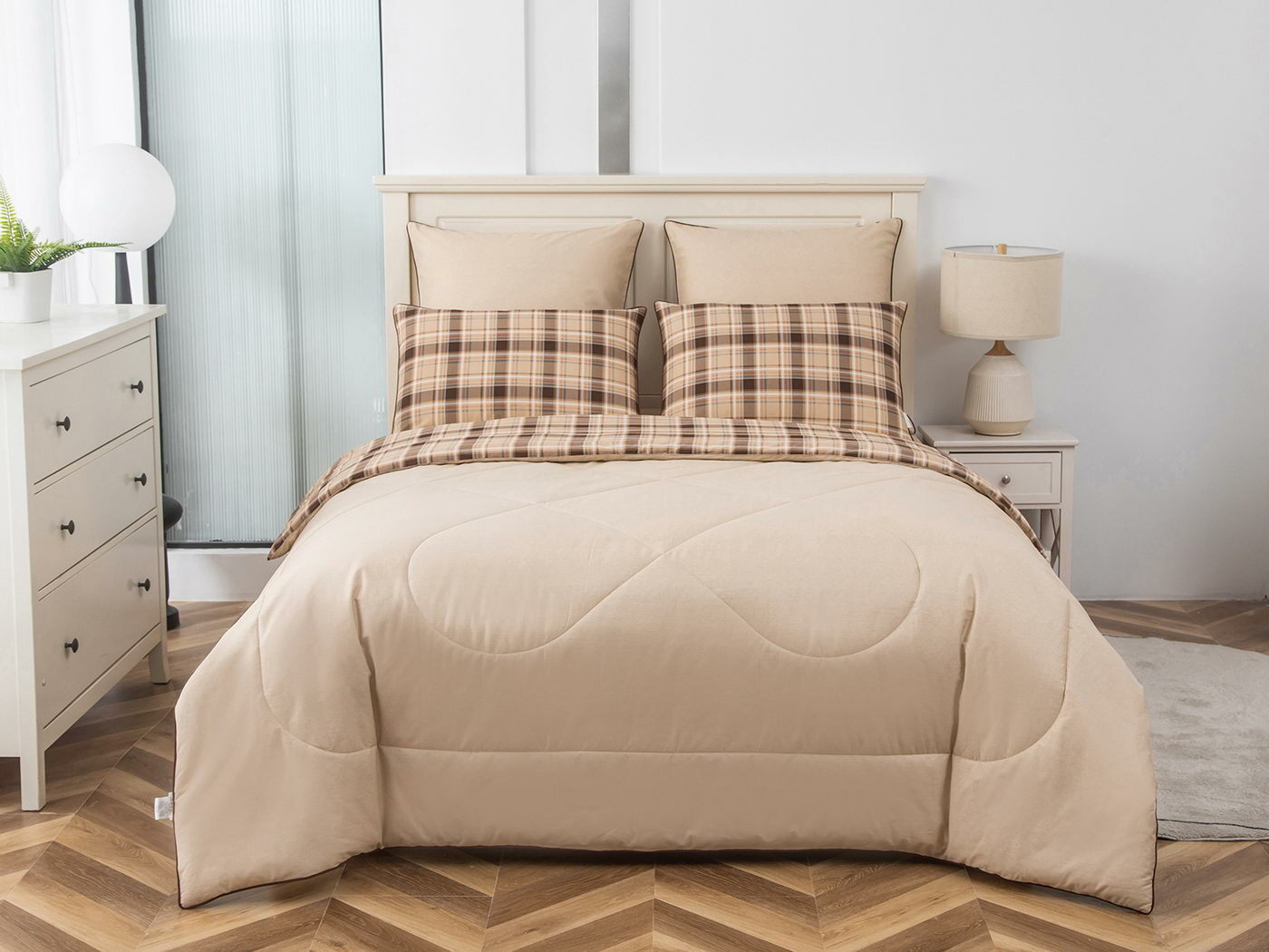 Особенность: двусторонняя модель, наволочки и одеяла декорированы кантом.