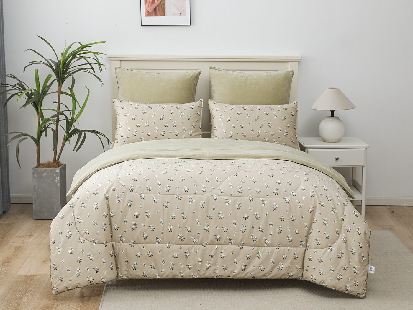 Обратная сторона одеяла – принтованный сатин натуральный хлопковый материал. На ощупь нежная и шелковистая, при этом комфортная и прочная ткань.