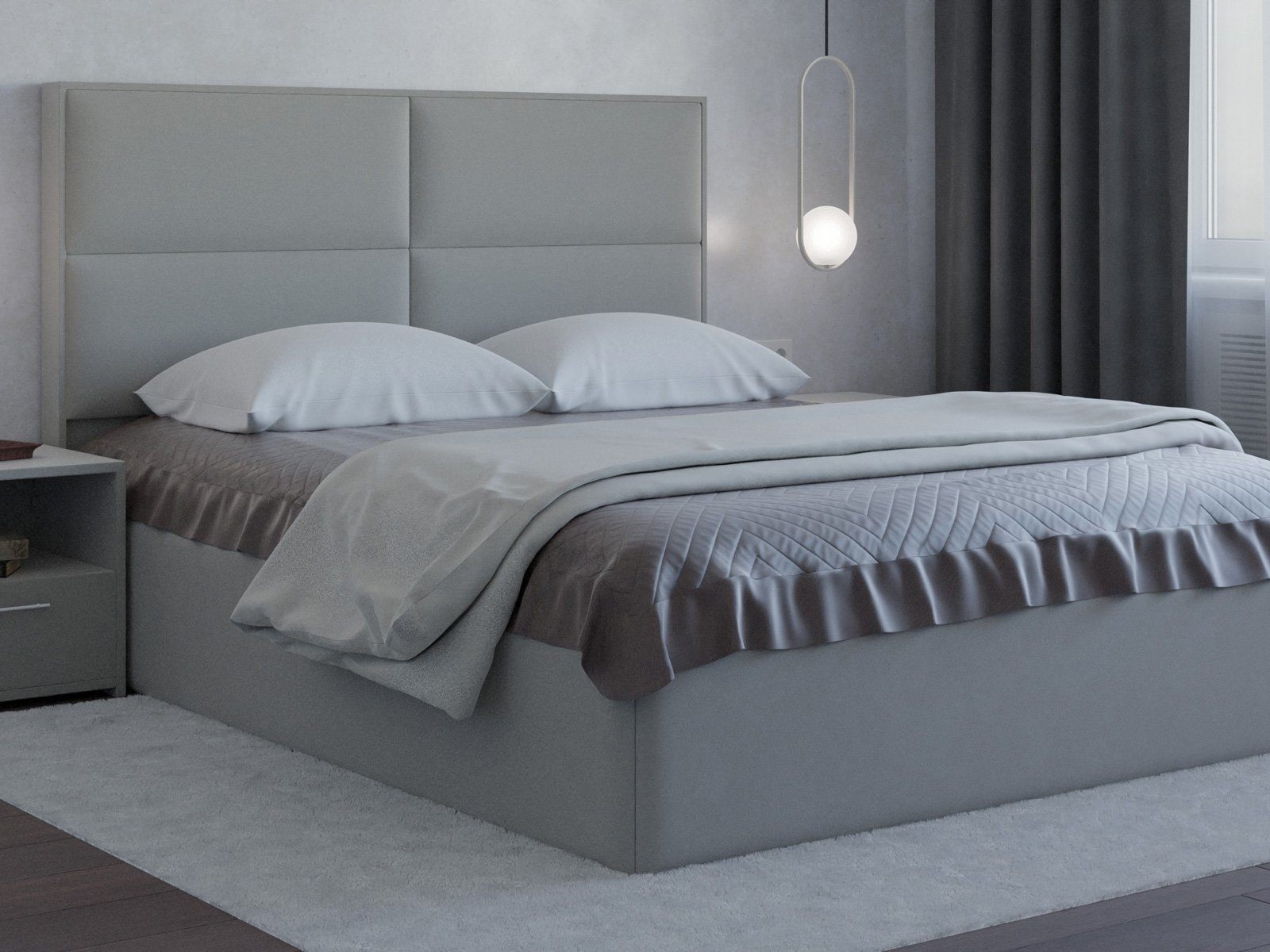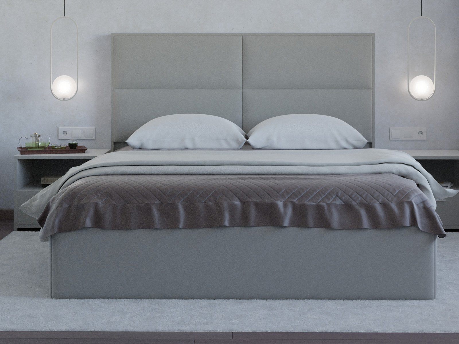 Мягкая кровать с обивкой из велюра.