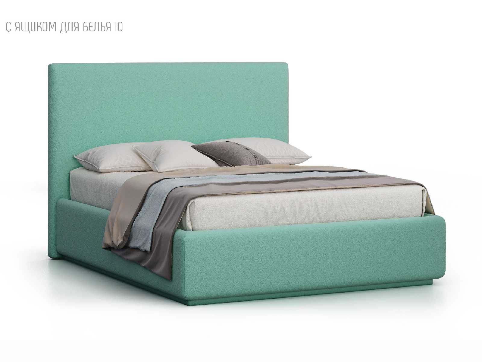 Кровать укомплектована IQ с подъемным механизмом и ящиком для белья без дна (дополнительная платная опция - дно к ящику IQ из HDF (ХДФ). Каркас кровати на цоколе, декоративный чехол на цоколе съёмный. Глубина ящика для белья - 30 см, без ограничения нагрузки на ящик.