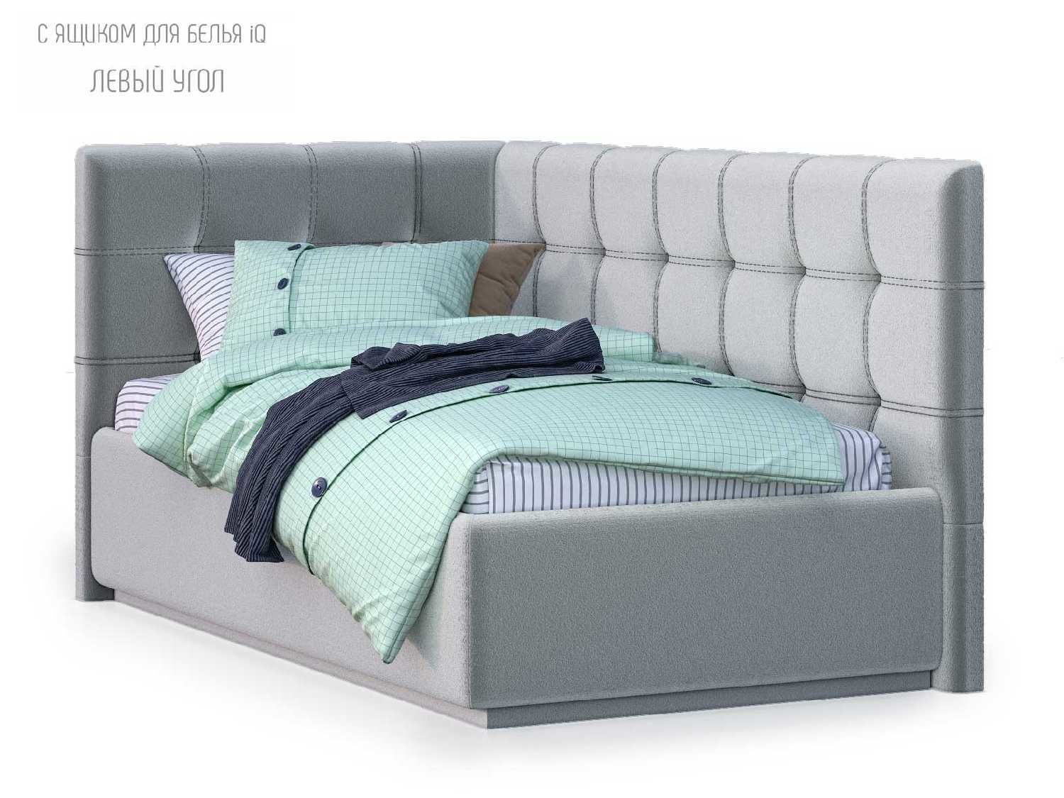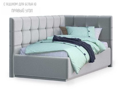 Для определения варианта исполнения угла требуется "встать" по длинной стороне угловой кровати, лицом к длинной боковине и определить, с какой стороны будет изголовье: изголовье со стороны левой руки - вариант исполнения "левый", изголовье со стороны правой руки - "правый" (на фото представлена кровать с исполнением угла — левый).