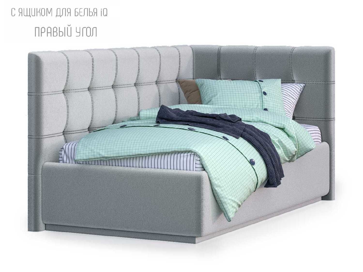 Кровать укомплектована IQ с подъемным механизмом и ящиком для белья без дна (дополнительная платная опция - дно к ящику IQ из HDF (ХДФ). Каркас кровати на цоколе, декоративный чехол на цоколе съёмный. Глубина ящика для белья - 30 см, без ограничения нагрузки на ящик.