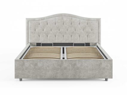 Кровать комплектуется металлическим основанием и подъемным механизмом со вместительным бельевым ящиком. Дно бельевого ящика легко сдвигается для обеспечения уборки под кроватью.