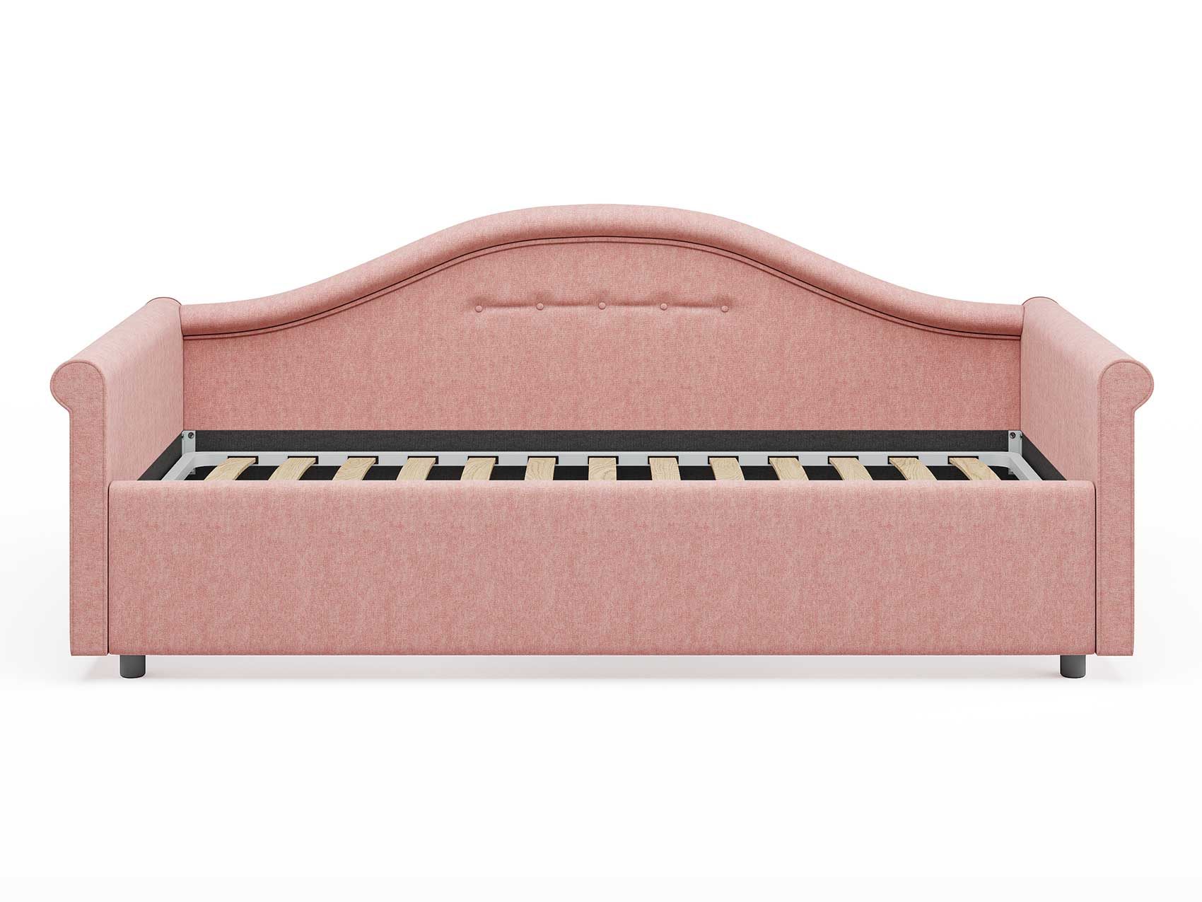 Кровать комплектуется металлическим основанием (без опор), которое имеет 13 рядов встроенных березовых ламелий на каждое спальное место, обеспечивая равномерное распределение нагрузки.