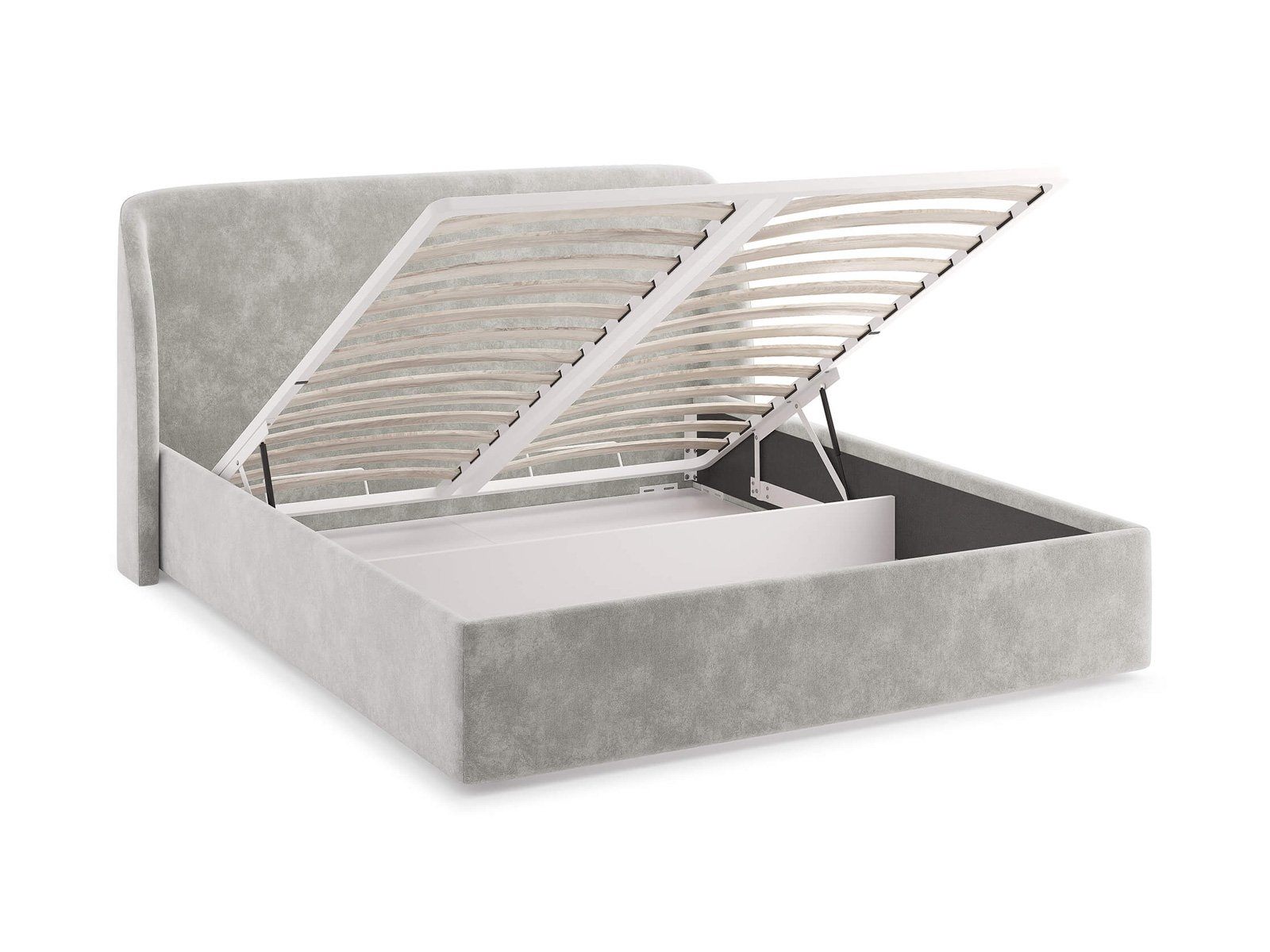 Кровать комплектуется металлическим основанием и подъемным механизмом со вместительным бельевым ящиком. Дно бельевого ящика легко сдвигается для обеспечения уборки под кроватью.