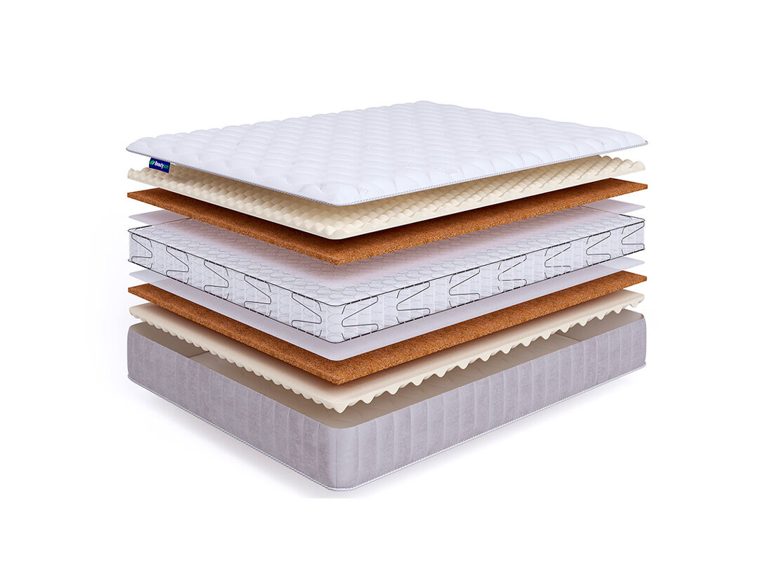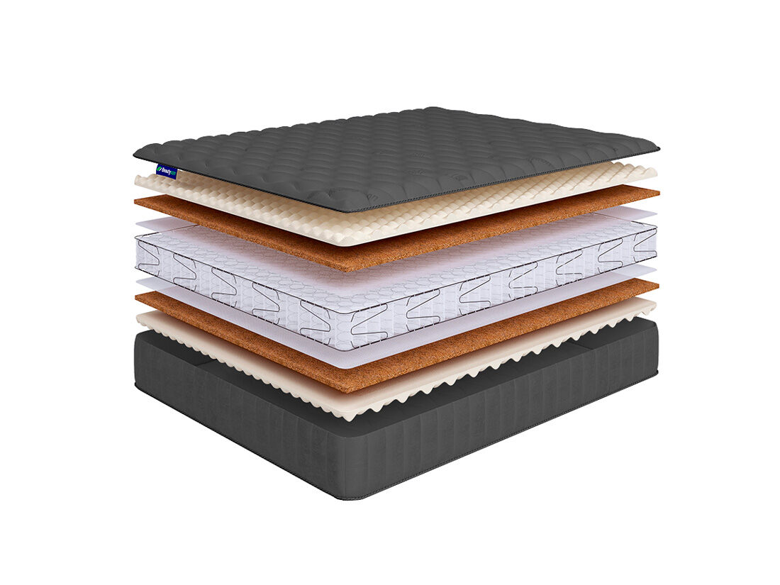 Основным наполнителем матраса является рельефный материал – airfoam massage. Он обладает расслабляющим и микромассажным эффектом, благодаря которому способствует улучшению микроцеркуляции крови в организме во время отдыха. Так же для улучшения ортопедического эффекта с двух сторон матраса положен слой латексированной кокосовой койры (2 см).