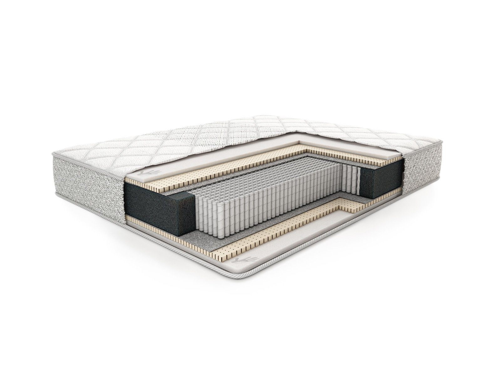 Матрас получил симметричную установку материалов и возможность полноценного использования любой из спальных сторон. Зеркальное расположение наполнителей позволяет добиться абсолютно равных параметров мягкости.