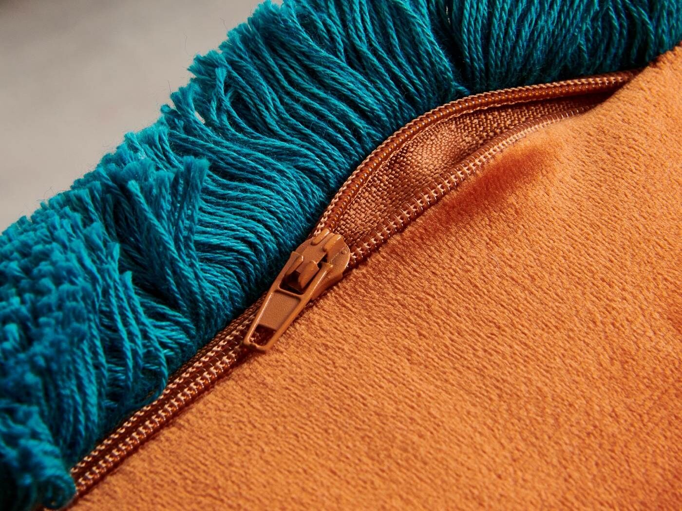Особенность : с бахромой, потайная молния под цвет вшита в край наволочки.