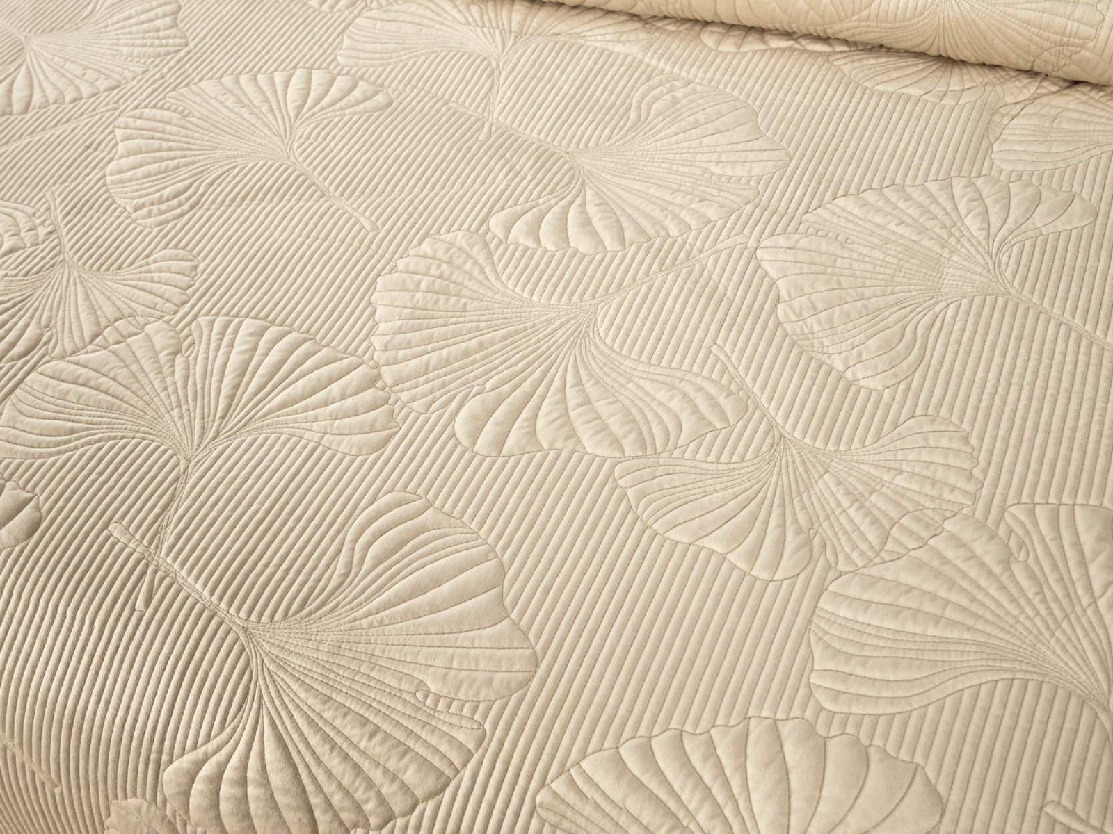 Роскошный растительный орнамент в виде вышивки добавит Вашей спальне элегантности и изысканности. Текстура цветочного узора будет сочетаться с другими элементами интерьера, такими как шторы, подушки, ковры и т.д.
