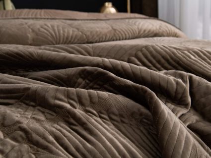 На создание велюрового покрывала Ноэль наших дизайнеров вдохновила ночь в середине лета, когда на раскаленную от жары землю спускается долгожданная прохлада. Роскошная вышивка в виде пальмовых листьев будет напоминать о тени, которую отбрасывают деревья.