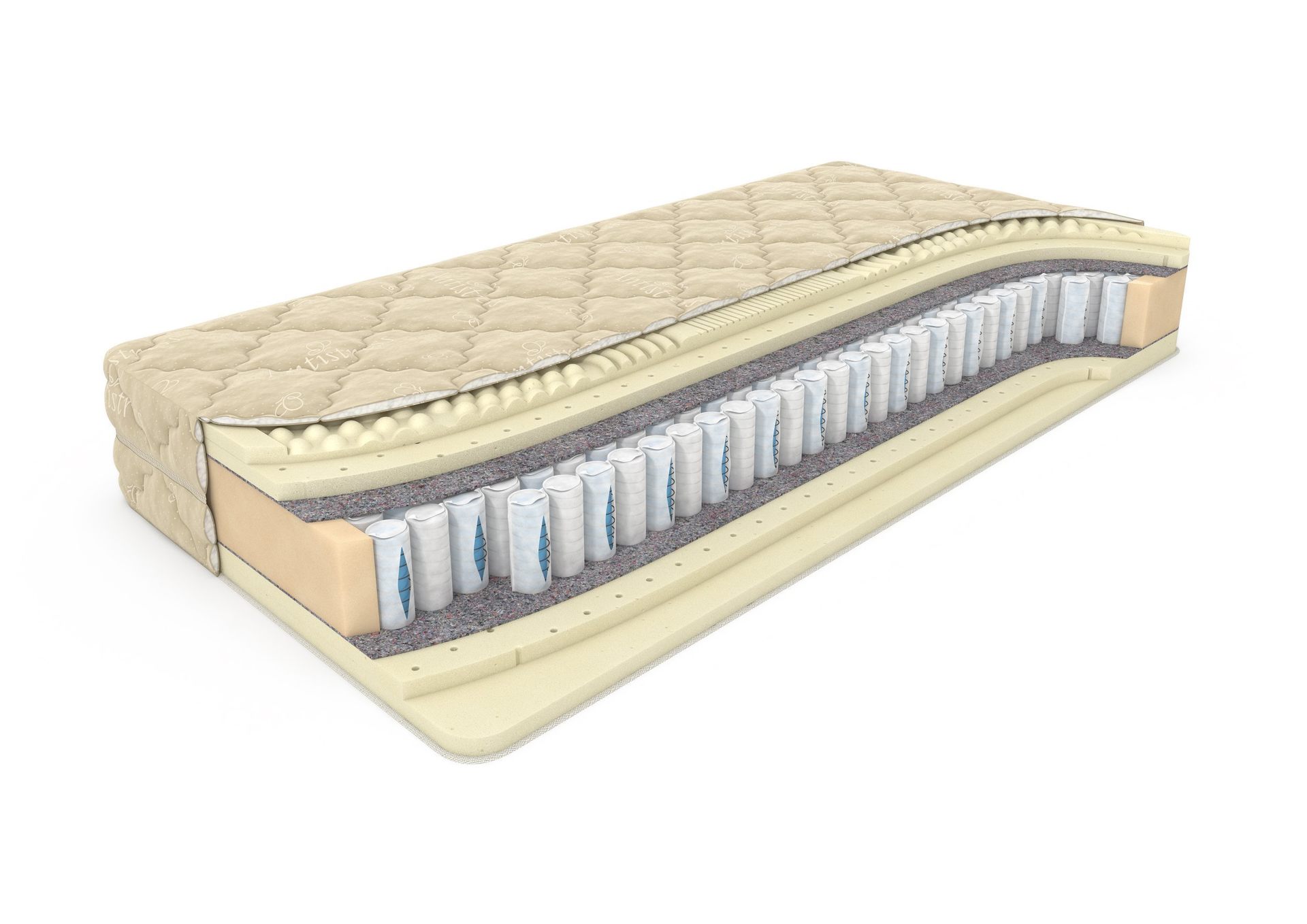 Мягкий матрас Relax Massage DS высотой 25-26 см создан на основе конструкции "пружина в пружине": каждая вторая пружина в шахматном порядке включает в себя еще одну поменьше. Такой пружинный блок обеспечивает усиленную поддержку спины, выдерживает очень большие нагрузки (до 160 кг на спальное место) и отлично подходит для пар с большой разницей в весе. Наполнение матраса с каждой стороны одинаковое - два вида натурального латекса. Внутренний слой - обычный перфорированный латекс, верхний комфортный слой - семизональный латекс с рельефной поверхностью, который помогает позвоночнику принять нужное положение, снимает напряжение с мышц и оказывает массажный эффект. Мягкий и приятный на ощупь велюровый чехол для модели Relax Massage DS обладает антистрессовыми свойствами.