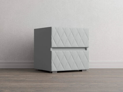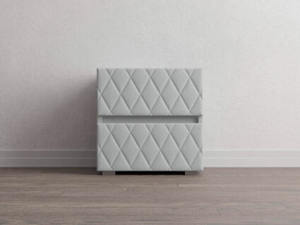 Тумба с мягкими фасадами, украшенными изысканной стежкой в виде ромбов, представляет собой идеальное сочетание утонченного дизайна и функциональности. Два выдвижных ящика с направляющими скрытого монтажа оснащены доводчиками. Тумбу дополнительно можно укомплектовать стеклянной столешницей. Широкий выбор фактур и цветов исполнения.